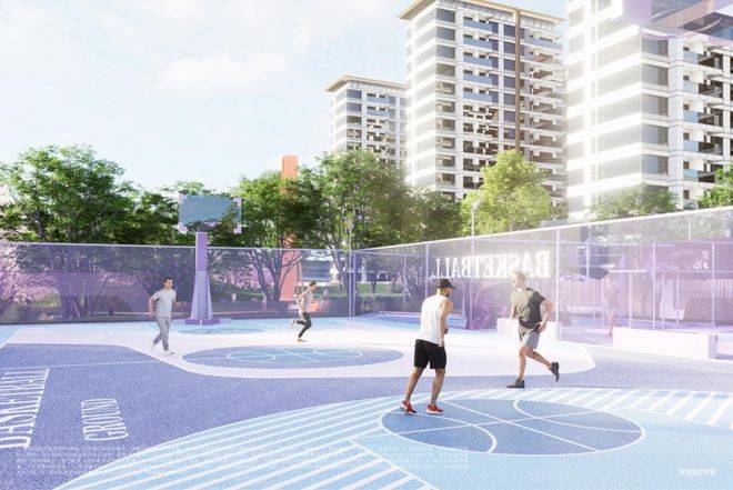 这座公园不只是社区的配套,更是重固的公共生活空间:火山蹦床、滨水跑道、篮球公园、网球聚场等场景散落其间,双水系穿流而过,东侧还专门设置两个出入口,业主出门步行即达,轻松融入自然。