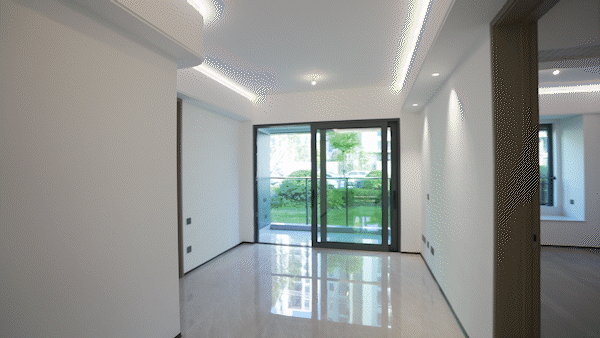 纯两梯两户,每户拥全明带飘窗的电梯厅,提升归家仪式感的同时可打造双玄关,放伞、挂衣、换鞋等动作在进门前即可完成,就连不常用的行李箱、运动器械、儿童玩具等物品,也能在此妥善安排,释放室内空间。