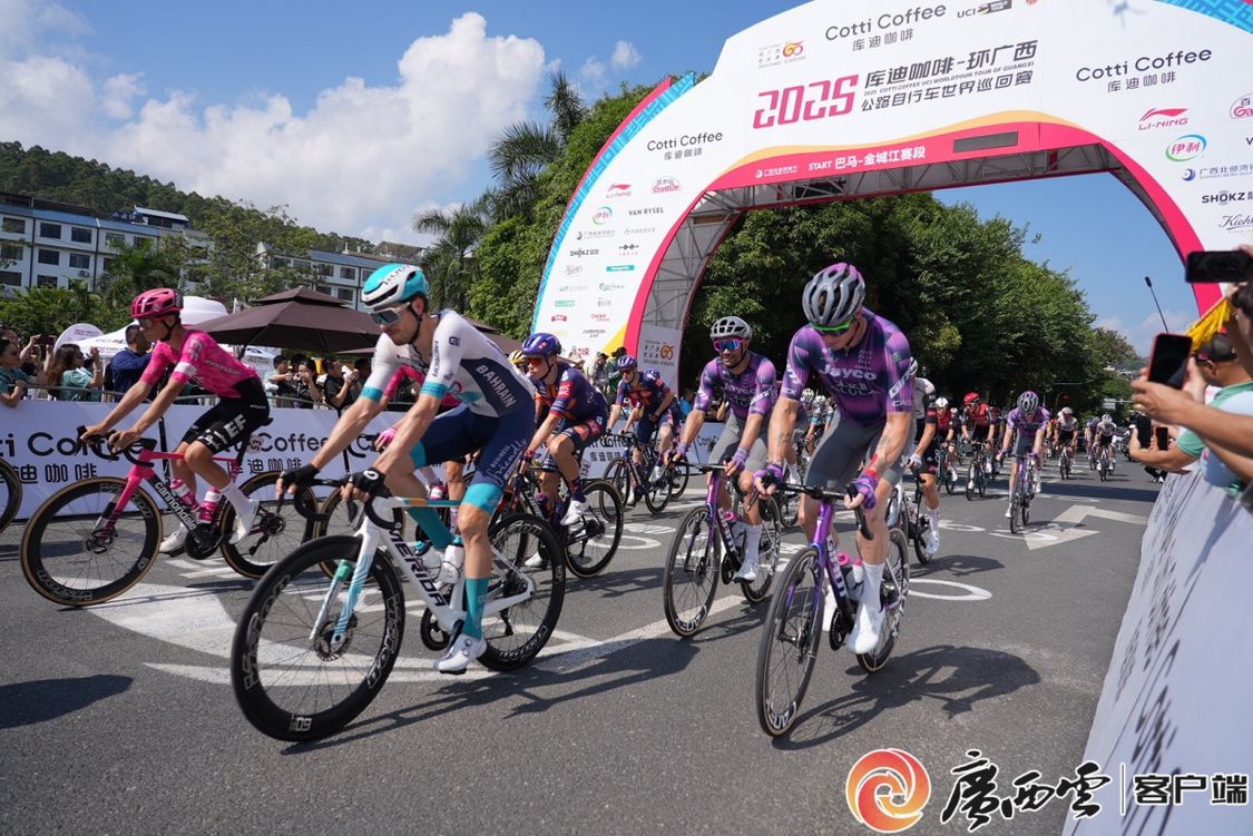 靖西—巴马赛段全程213.5公里,是2025环广西世巡赛的最长赛道。从百色靖西锦绣古镇启程,车手们向巴马寿乡文化广场进发,从“山水边城”直奔“世界长寿之乡”。